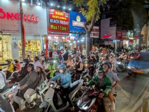 ホーチミンの通りを埋めるバイクの群れと高層ビルが象徴的で